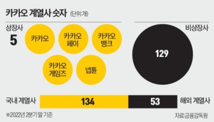 지난 6월말 기준으로 카카오의 계열사는 모두 187개(국내 134개, 해외 53개)나 된다. 지난 2013년에 16개에 불과했던 계열사가 해마다 135개씩 늘어난 셈이다. 이런 문어발 기업이 또 어디 있을까? 문어발이 아니라 지네발이다.